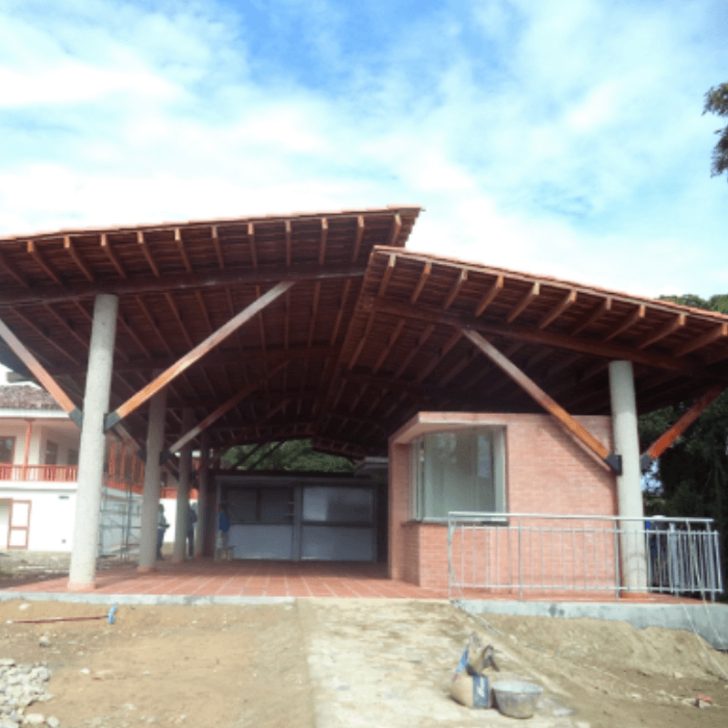 - Estructura en madera con cubierta en teja de barro